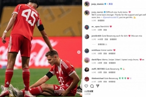 斯坦尼西奇也在今日通过社媒晒出自己的伤退照片,并感叹:“一场艰难的比赛,两次受伤。我们会以更强的姿态回归。感谢球迷们的支持。兄弟,早日康复@穆西亚拉,你可以做到!”
